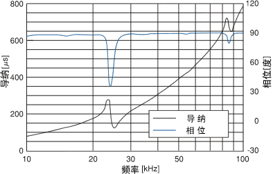 是对压电传动装置等所使用的压电元件的电谐振特性的测量。 FRA与快速傅里叶变换(FFT)等不同, 不但能够对特定频率范围内的频率分辨率作出精细的设定, 还具有±0.3度的高相位精度, 所以能够详细地测量谐振点附近的特性。 如果与功率放大器组合,则不仅能测量小振幅特性, 而且也能测量大振幅特性(在实际驱动电压下的特性)。