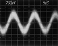 使用SA-200F3作为第一阶段增幅器在示波器上显示放大后的正弦波信号.(总增益 120dB)
