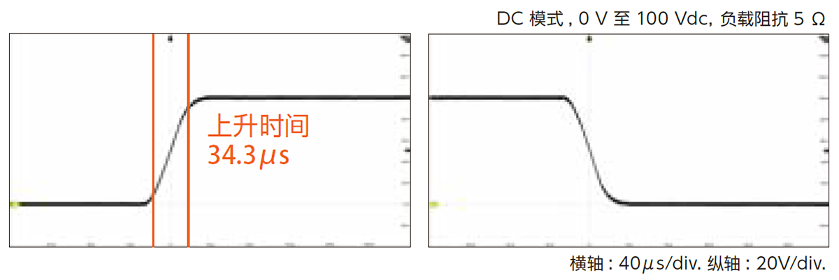 上升时间比典型的 AC 电源的上升时间短,因此可以以高再现性输 出快速变化的波形。适用于再现瞬态响应。