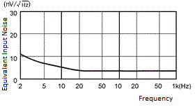 一般来说,放大器噪声会随着频率的降低而增加,如图2所示。另外,对比具备与信号源相同阻抗值的电阻所产生的热噪声,该噪声不可能比之更低(如图3)。